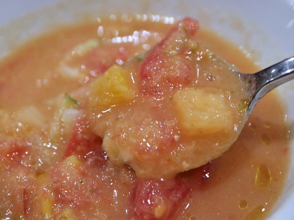 ●フルーツスープ復活、けれど秋ヴァージョンで、梨が多いです。色味も食感も盛夏のものとは違う。