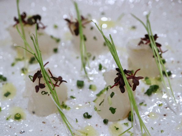 ●きすの昆布〆。これははっきり昆布風味がしみこんだ、旨味明確な昆布〆。オリーヴオイルの風味を除けば和食を食べているとしか思えない魚責め。これどこで習ったのですか?
