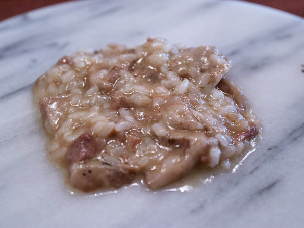 ●赤牛の煮込みと天然舞茸のリゾット 黒いパウダーは椎茸をじっくり炒めたものとのこと<(_ _)>