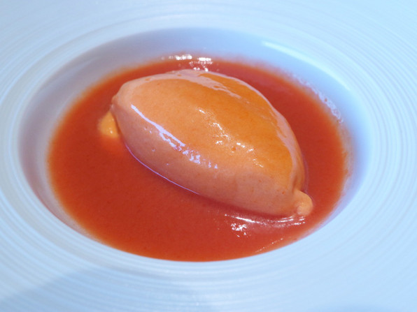●ポワヴロン ルージュ、冷製赤ピーマンのムースで始まりました。粋な香味です。