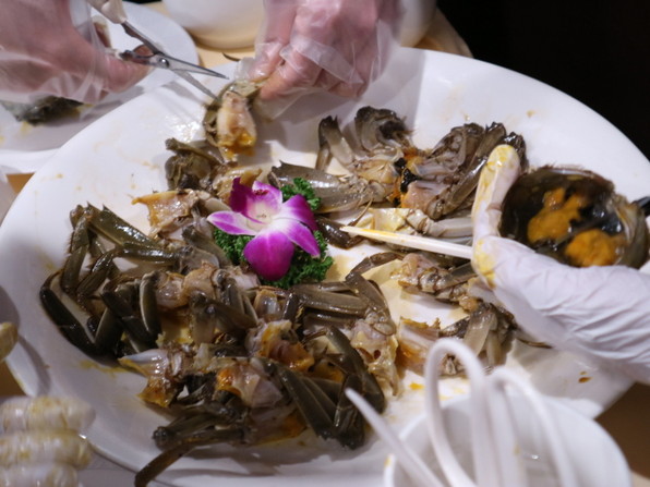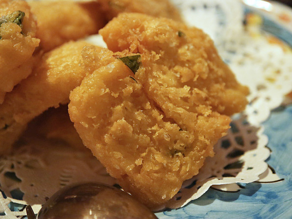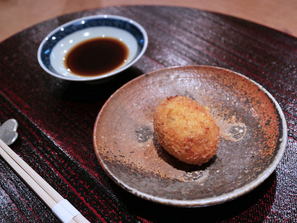 ●上海蟹の揚げ物(オスの上海蟹のクリームソース仕立て。蟹クリームコロッケ)