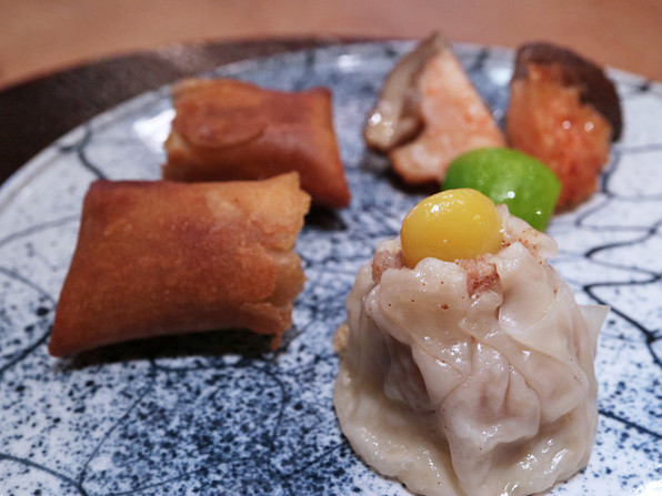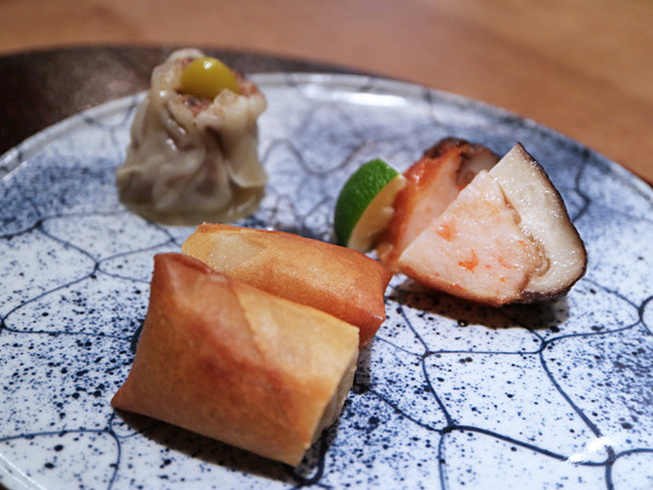 ●点心3種 海老芋春巻、銀杏焼売、椎茸の海老詰め