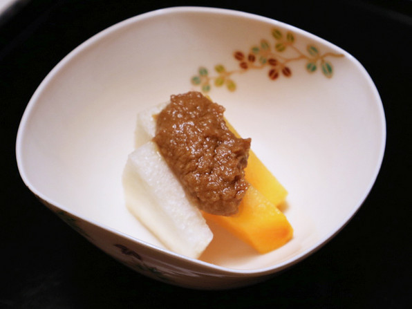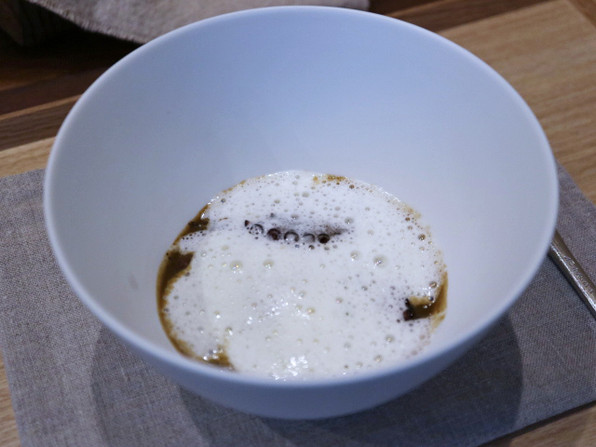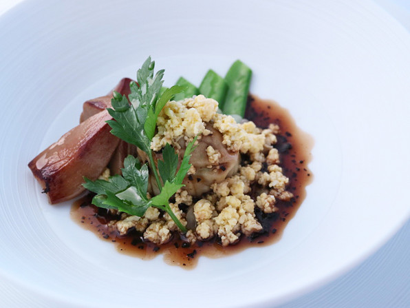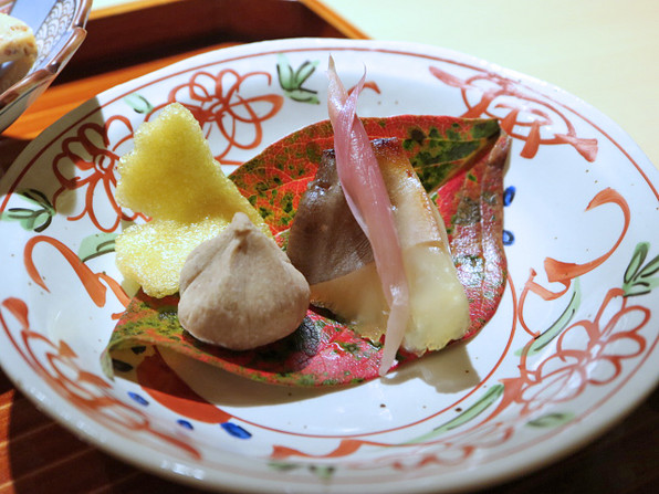 ●渋皮栗の素揚げ、下に蕪のソースという粋な先付に続いて、