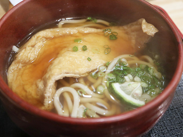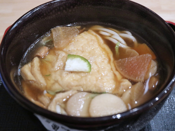 ●そしてそれからまたしばらくして、けんちんうどん 800円 に甘きつねをオプションで入れていただいたものです。+100円できつねを足してくださいました。うれし♪