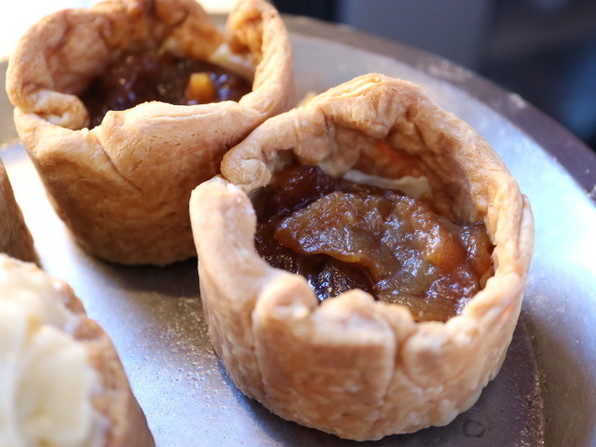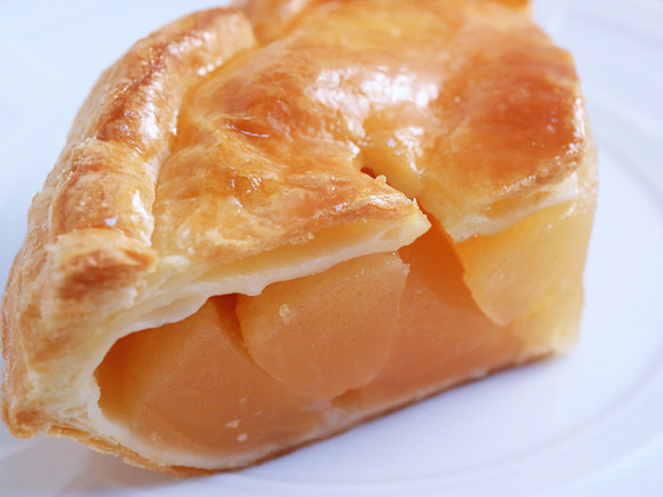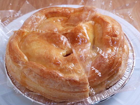 ■ 40個ほど作るのに、5~6時間かかる労作で、とにかく時間と手間がかかるから、「あまり売れても困る(笑)」ということでした。しかしおいしさが違うわ。みっちりのりんごの下にはクリームチーズの層があり、ほどよい酸味とこくを与えています。土台はサクサクサクのフィユタージュです。