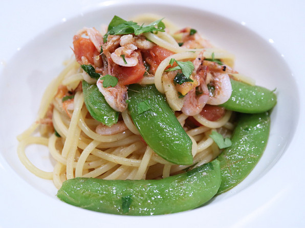 ●オリーヴ&ケイパー&じゃがいも(バジルソース)/海老&桜海老&ねぎ