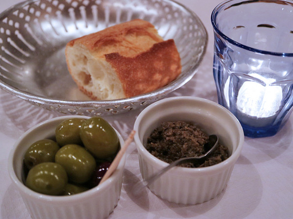 ●順番にいきます。まずオリーヴやタプナードと共にバゲットが供されます。