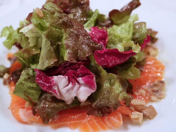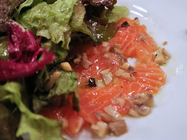 ●「魚+肉」の組み合わせでいこうと思い、前菜にサーモンマリネ。
