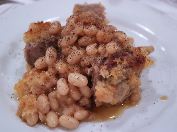 白いんげん豆に、豚ほほ肉、ソーセージ、鴨のコンフィ。