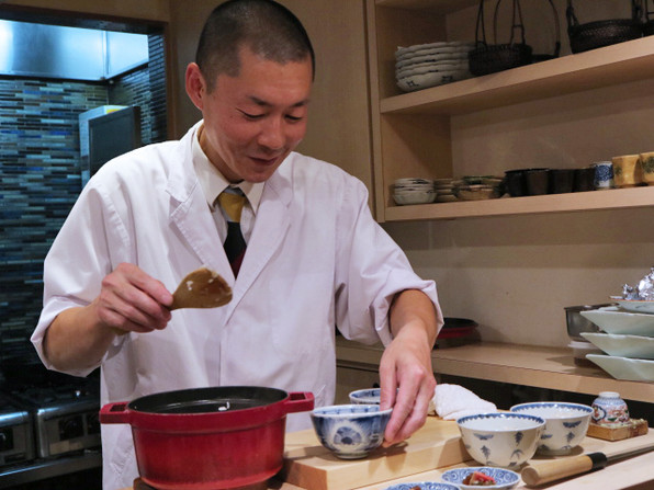 店主のフェミ男=本間義巳(よしみ)さん、ひとりでぜーんぶやっていらっしゃいます。6000円(+税)でこのコース、本当に偉いです。