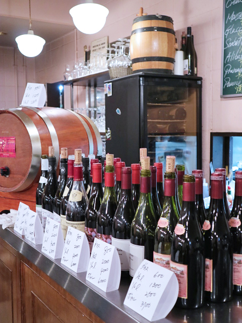 ●カウンターには数種類のボージョレ・ヌーヴォーが並べられ、グラス1杯からボトルまで、好きに飲めたのでした。