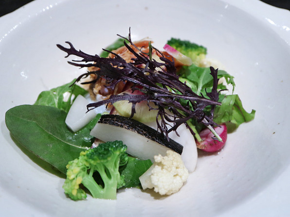 ●野菜いろいろのお皿、「鯖街道の出会いもの」。14種類盛り込まれていて、
