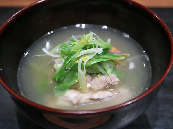 ●お汁は鶏だしスープです。お茶碗より大きな汁椀にたっぷりです。ものすごい満足感。