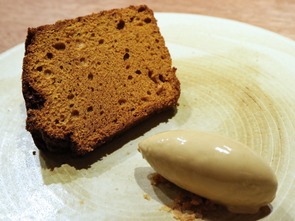 ●キャラメルのシフォンケーキ、黒糖のグラス
