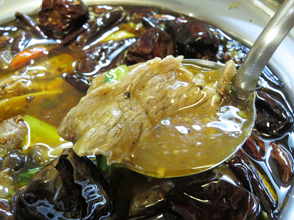 ●「菜格」さんの水煮牛肉、これです。四川式煮込みです。本当においしいと思いました。店主さんいわく、もっといい牛肉使ってやりたいのだと。けれどそうすると、お値段にも反映せざるを得ないから、どうしたものかー、と。
