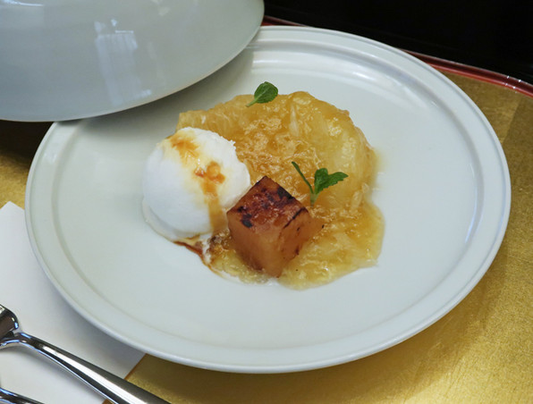 ほわほわの口当たりの平目に、どんどん食感や香りを添えて重層的な味わいにしたお皿。これも旨いわ~~☆☆☆