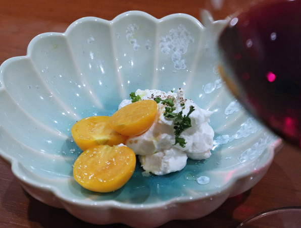 ●水牛のリコッタチーズとほおづきトマト、このリコッタのなめらかさとおいしさは何事だ? ほおづきトマトも、本当のトマトが青ざめて逃げるほどおいしかった・・・( ̄○ ̄;)( ̄○ ̄;)