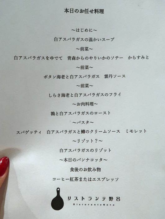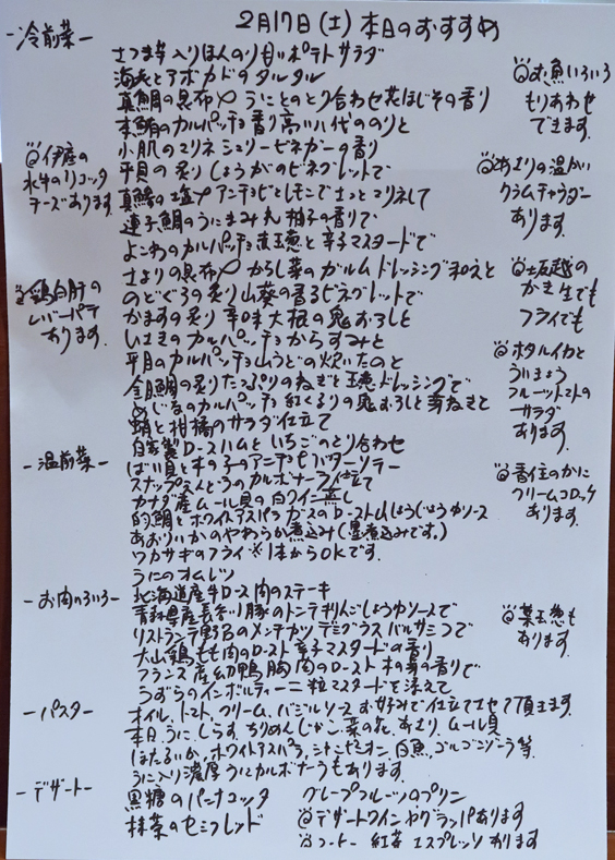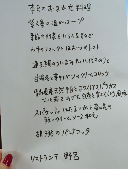 「リストランテ 野呂」2月17日(土)夜20:30~。