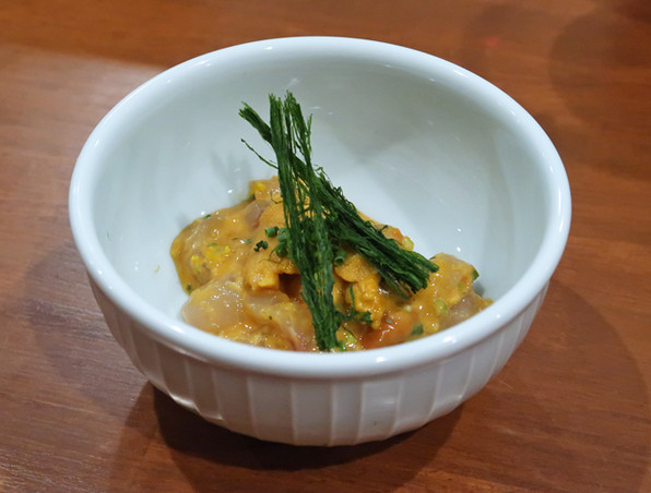 ●雲丹まみれの連子鯛、八代の海苔がまた香味鮮やかでした。