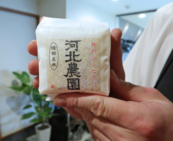 ●帰りがけ、のろっちがすすめてくれたのがこのお米、「河北農園」さんの丹州コシヒカリの小さなパック、300gで540円。「リストランテ 野呂」でも購入可能です。炊いていただいてみます・・・間違いなくおいしいと思います。食べる前から安心です。