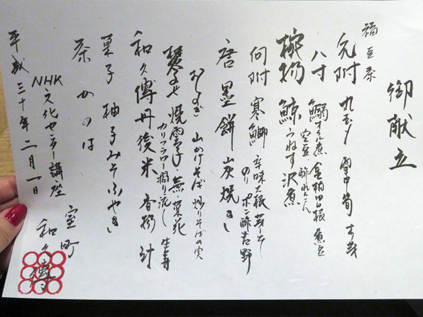 2月1日第1木曜のNHK文化センター講座は、「室町和久傳」さんにお願いしました。