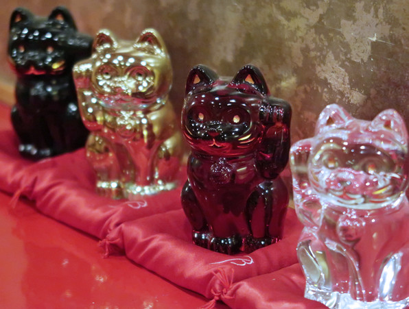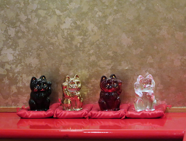 ●一時ちりぢりになっていたクリスタルの猫っち。全員もとの位置に戻り、ひと安心です。やっぱりみんな揃ってカウンターにいなければ。