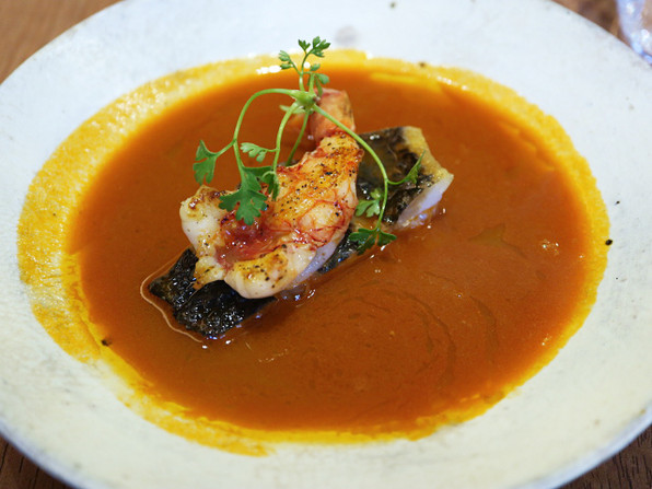 とりわけ好評で、皆さんおいしかったと異口同音に言われたのはブイヤベース。ブイヤベースといっても、本来の魚介のごった煮みたいなのとは違って、スープは甲殻だしの効いた、洗練の極みといえるもので、魚と海老は別に火を入れられています。ほんとーーーにおいしい、何もかも細部まで気が入っていて風味絶佳というお料理でした(^o^)☆☆☆