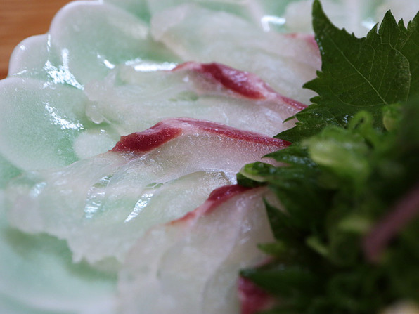 ●鯛の薄造り。鯛のねっとり加減もよく、1枚また1枚と、たたたと食べ進みました。だいたいわたし食べるのが非常に早いです。