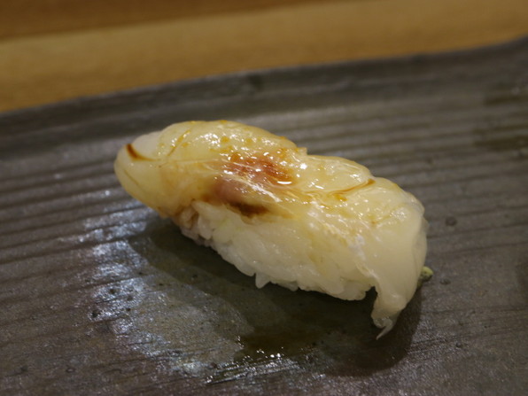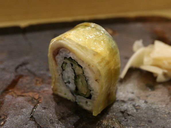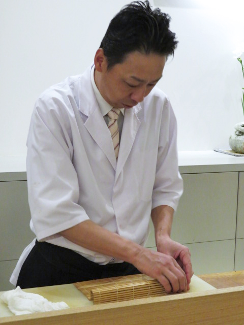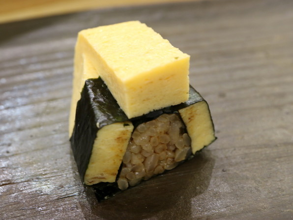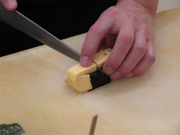 ●作る手元を見ていても不思議になるたまごのお寿司。ハイアット時代に生まれたオリジナルということです。阪神タイガースファンのお客さまがひどく喜ばれたとかです。