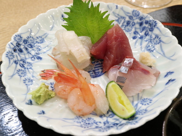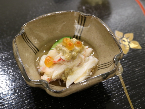 ●先付、お造り、炊きものなど5皿の後に、にぎり10貫くらい。赤だしと黒糖ソルベというコースでした。