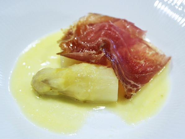 今回はこの中から食べたいもの(白アスパラガスや筍、ほたるいか)をお願いして、肉はおすすめのものがあったのでそれに従い、以下のようにいただきました。