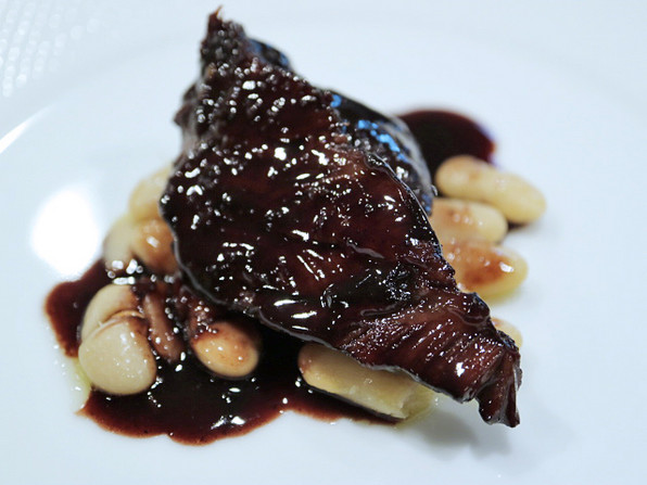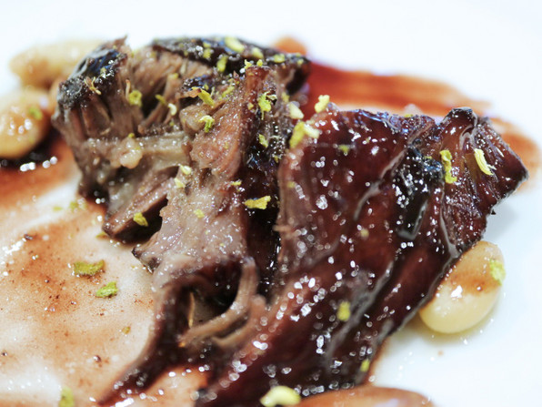 ●和牛赤ワイン煮込み。フランス語で言ったらブフ・ブルギニョン、イタリア語は文字通りに牛肉ヴィノロッソ。これはモンテプルチアーノを使われたと。濃い濃い風味、肉はほぐほぐにほぐれて、とろっと柔らか。いかにも優しい口当たりなのにしっかりじんわり肉の旨味は押し寄せて、これはやみつきになるわ(T_T)(T_T)