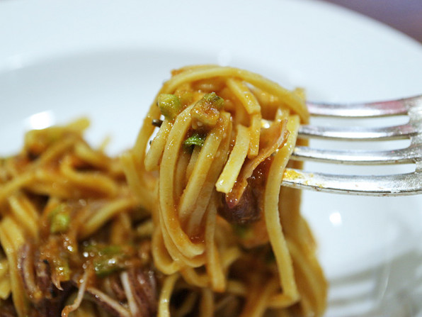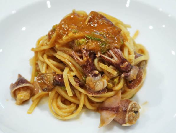 ●ほたるいかとふきのとうのパスタ、タリオリーニ。