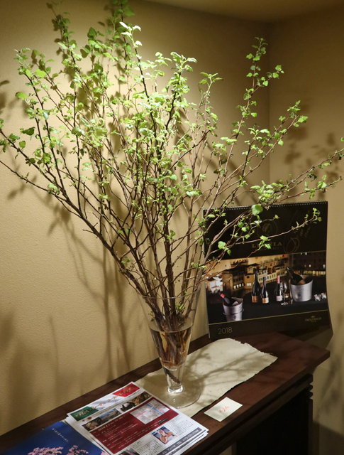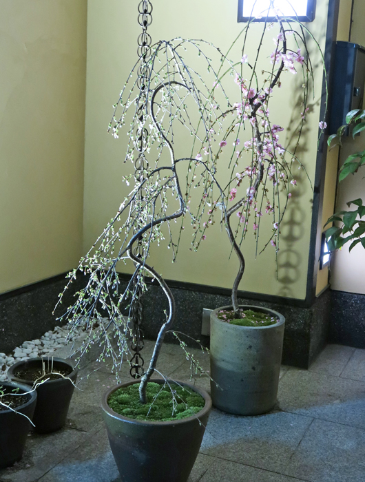 ●玄関に、奈弓さんが大切に世話をされているしだれ梅、しだれ桜。さらに、ヴェルヴェーヌ、ローズマリー。そして山椒までありました。なんともいい風情と思いました。