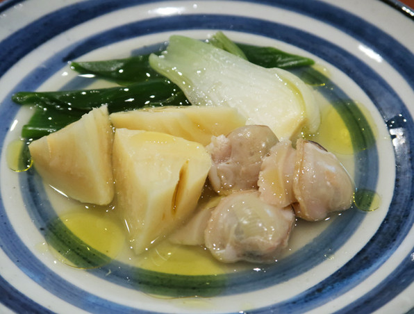 ●朝掘り物集女の筍、三重のはまぐり、淡路島の葉玉ねぎ。オリーヴオイルの香りが粋に効いて、これもたまらなくおいし☆☆☆