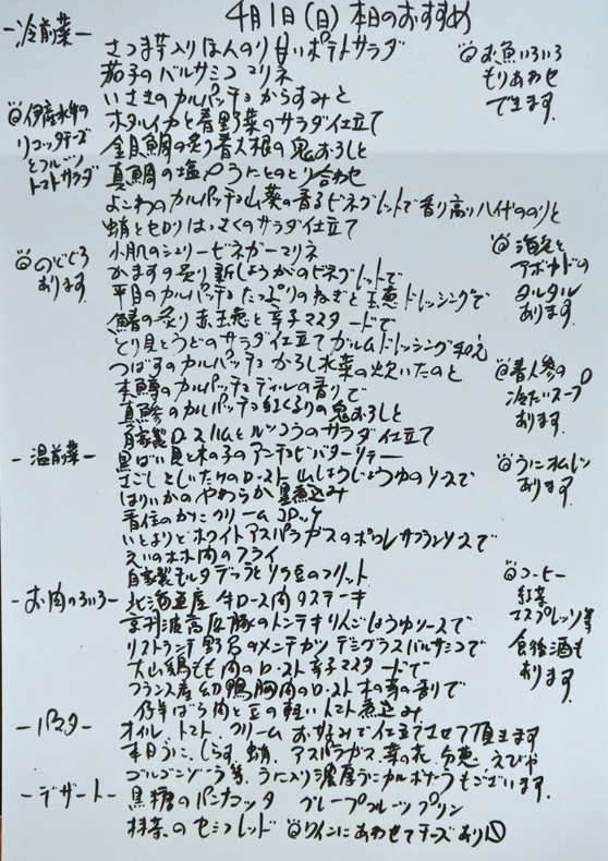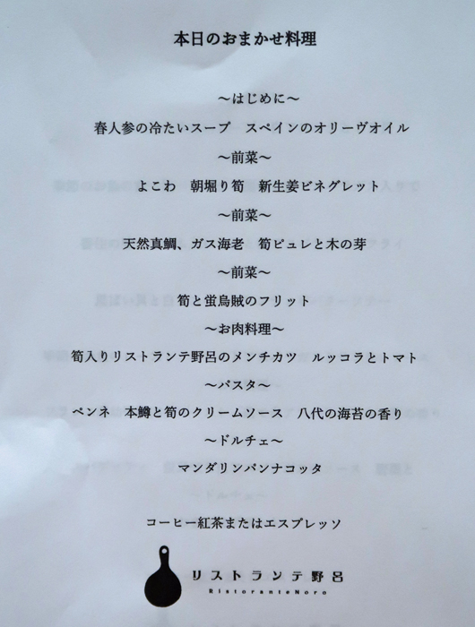 4月1日(日)夜、「リストランテ 野呂」で筍づくし。