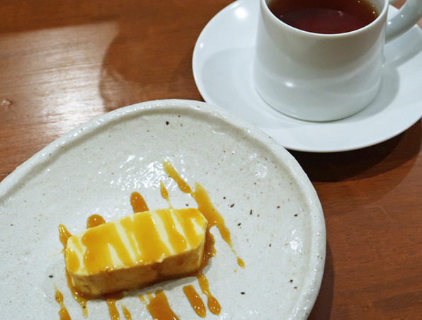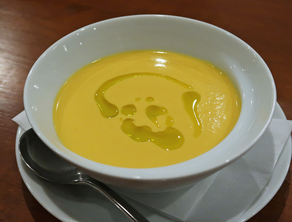 ●まずはにんじんの冷たいスープから。オリーヴオイルが目覚ましく香りを添えています。