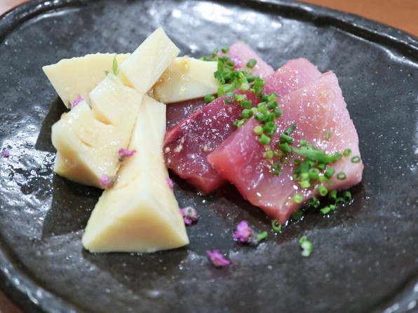 ●よこわに朝掘りの筍。新生姜ヴィネグレットソース。