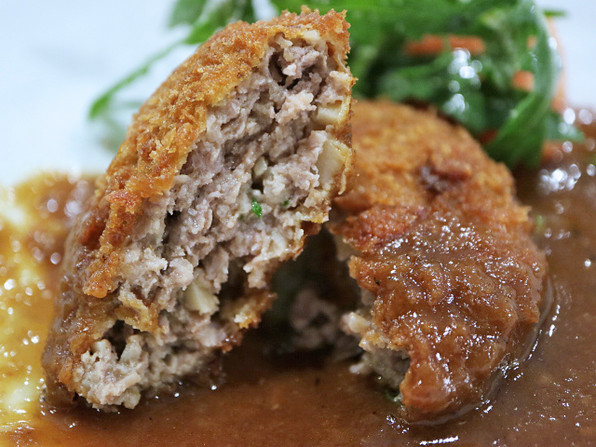 ●いつもののろっちのメンチカツ、に見えます。「リストランテ 野呂」のメンチカツのようだけれど・・・