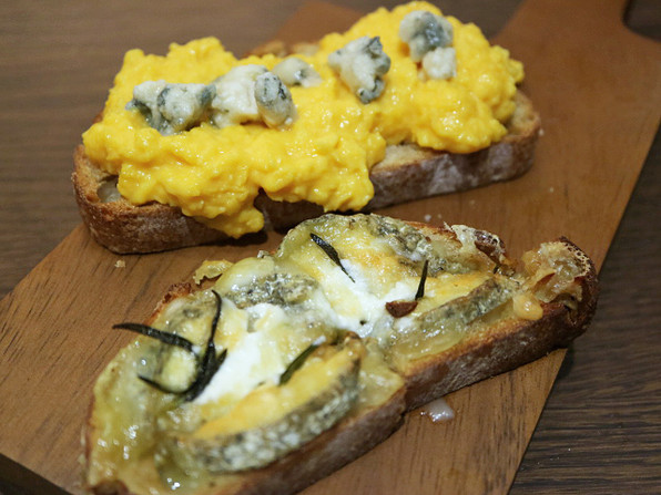 ●ロックフォールスクランブル/山羊チーズローストのタルティーヌ