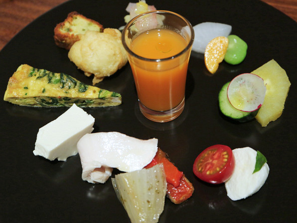 ●茄子のカポナータ、新玉ねぎのロースト、鶏むね肉レモン塩漬け蒸し