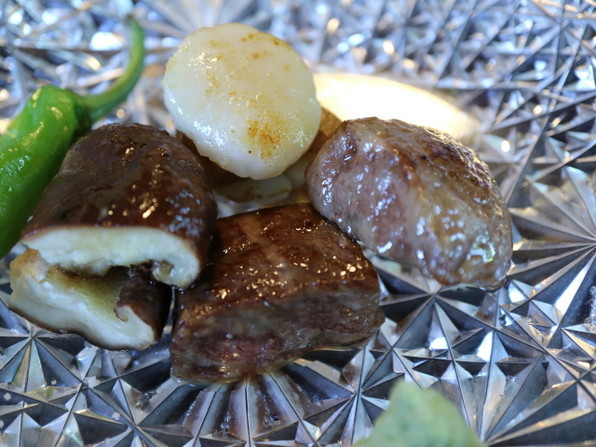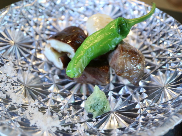 よき素材で創意に満ちて作られた八寸に始まり、蒸し物やお造りや焼き物が続き、蕎麦は温冷選べます。そばがきは塩と、砂糖醤油のなつかしい味でいただきました。お菓子も抹茶もついてお腹いっぱいいっぱいになりました。