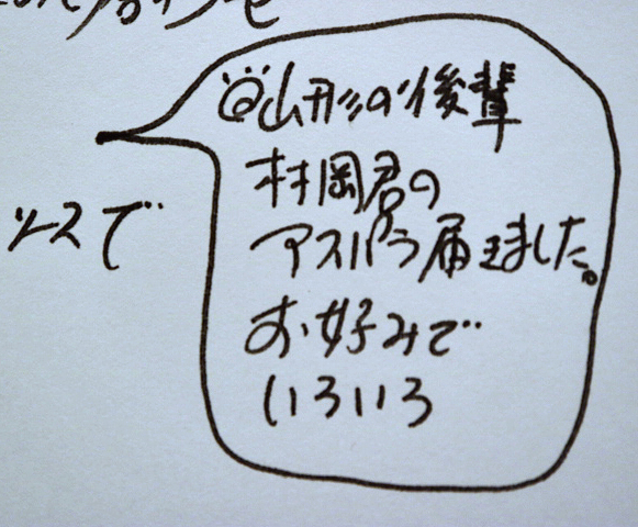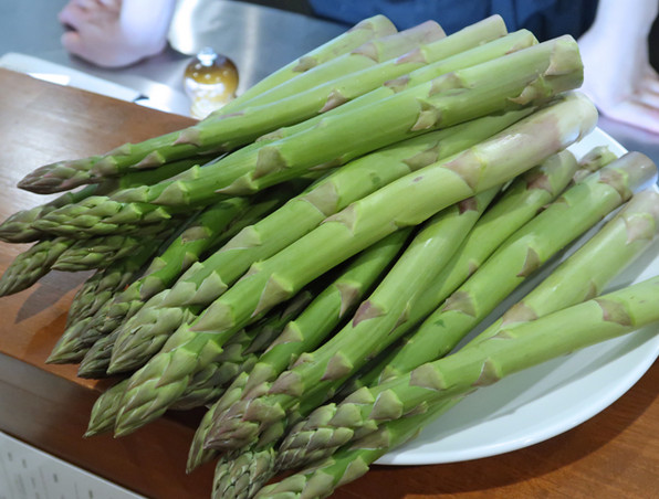 ●のろっち=野呂和美さんの山の上ホテル時代の後輩の村岡さん(山形の農家)からの、丸々太い緑アスパラガスをたっぷりいただきました。