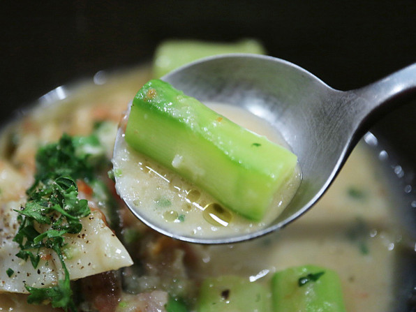 具材ははまぐり、ズッキーニ、スナップえんどう、アスパラガス!!