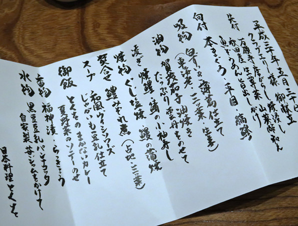 コースはすっかり夏の料理でした。ずいき薄葛仕立てやら賀茂茄子の雲丹のせやらを出していただき、締めは貸し切りでのみお願いできる「とくをのまかないカレー」。皆さんにものすごく喜んでいただきました。よかったー\(^o^)/\(^o^)/
