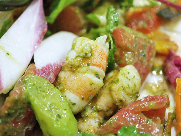 ●盛り盛り盛りのサラダ。ものすごく充実感があります。その上、いちばん底に海老がひそんでいると思っただろうか?(いいや思いはしなかった。)