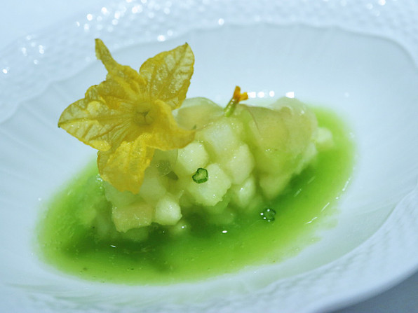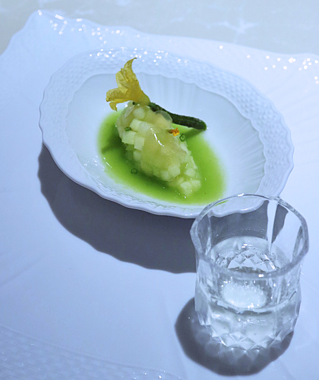 ●きゅうりと青りんご、この香り、このしゃきしゃき、さわやかな風がびゅーと吹き抜けていくような、前菜的なお皿。