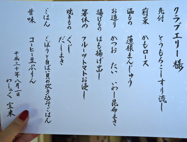 8月1日(水)クラブエリー、知恩院前の「わしょく宝来」さんで初開催。カジュアルな和食店です。