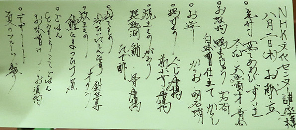 8月2日の第1木曜、NHK文化センター講座を、間之町通二条上ルの「割烹 市川」さんにお願いしました。