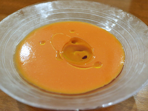 ●トマトとすいかの冷製スープ、レモンオリーヴオイル
